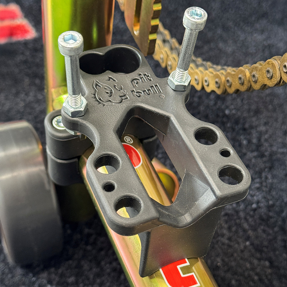 mounted to either side of the stand and has storage locations for the front or rear axle, spacers, axle nuts, keeper bolts, caliper bolts, and even safety pins. This item makes a great add-on to your Pit Bull stand - new or old.
